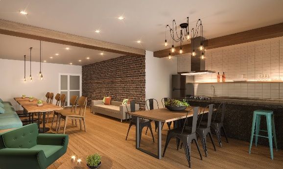 Apartamentos 2 e 3 quartos, incluindo 1 suíte, sacada e 1 vaga de estacionamento, piscina adulto e infantil, 2 churrasqueira, espaço pet, bicicletário, mini mercado, sala de festas, salão gourmet, academia, cinema, lareira, horta, Bicicletário